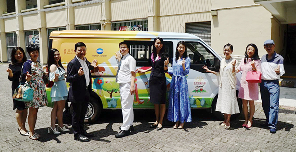 一眾嘉賓為全港首輛針對SEN學童及家庭而設的流動服務專車揭幕。