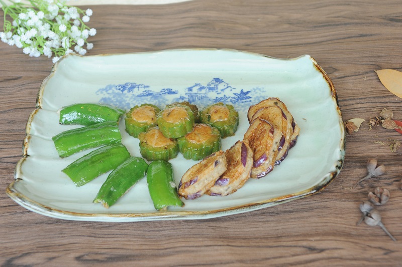 釀菜是賀州最具代表性的菜餚,煎釀賀州珍三寶計有茄瓜、涼瓜及青尖椒,釀入桂江魚肉,爽脆嫩滑。