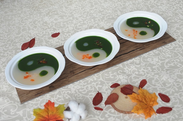 太極鴛鴦養生羹由有機涼瓜、芳林馬蹄、農家雞肉丁為主要食材,生津潤肺。