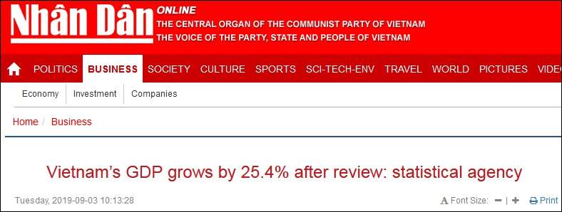 據越南共產黨黨報《人民報》9月3日報道,越南國家統計局局長表示,他們把2010-2017年國內生產總值(GDP)上調25.4%,以更好地反映該國經濟的實際規模和結構,使之符合國際標准。