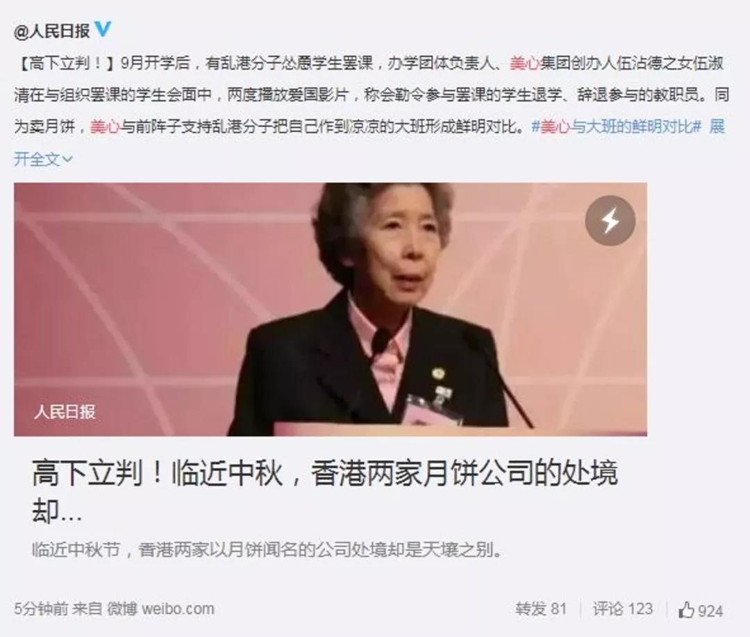 這幾天,香港一位70多歲的老人家火了,她於香港商報的專訪視頻被央視新聞、人民日報等知名媒體轉發,一夜之間獲得了數以億計的閱讀量,而她的美心月餅亦成為中秋節的大熱產品,她就是中華基金中學創辦人伍淑清。