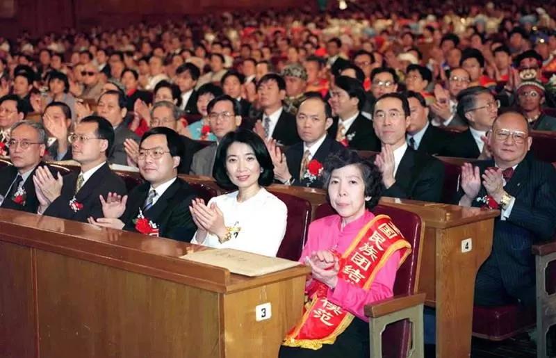 伍淑清(前排右)1999年出席在北京人民大會堂舉行的中央民族工作會議開幕式暨國務院第三次全國民族團結進步表彰大會。