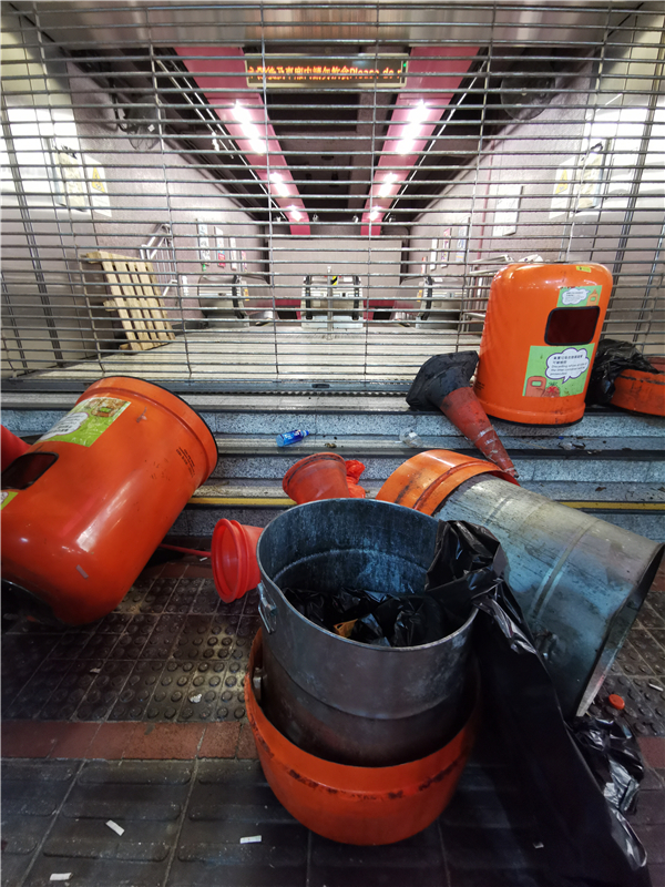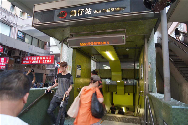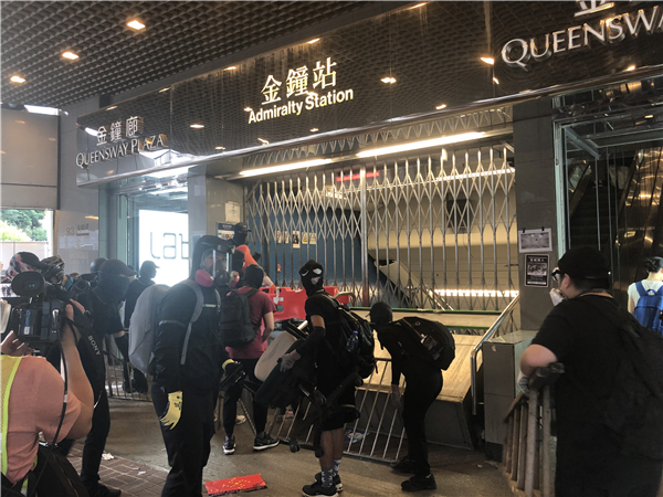 【19:00】暴徒破壞灣仔地鐵站。(记者刘深)