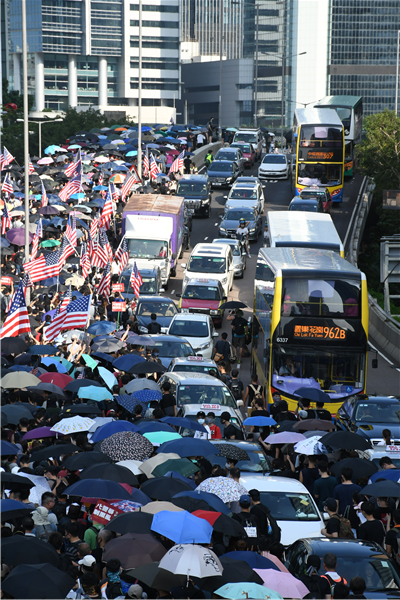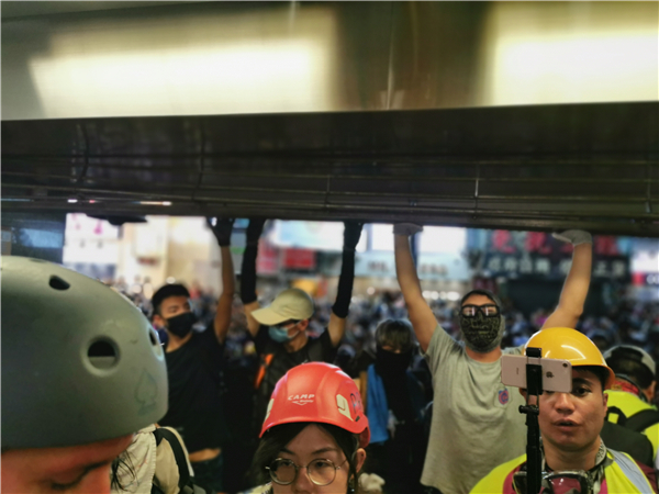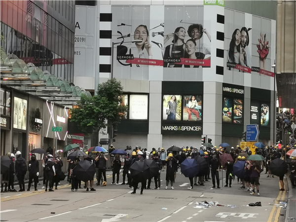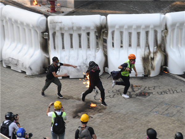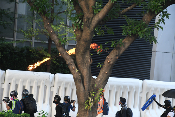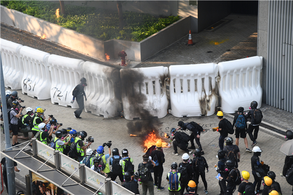 【香港商報網訊】15日下午的銅鑼灣遊行演變為暴力事件,示威者在多處堵路,破壞港鐵站和縱火,另有示威者圍攻立法會大樓,向大樓掟磚。
