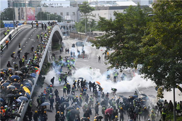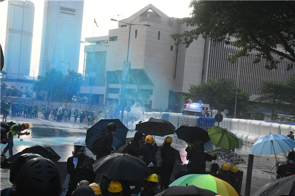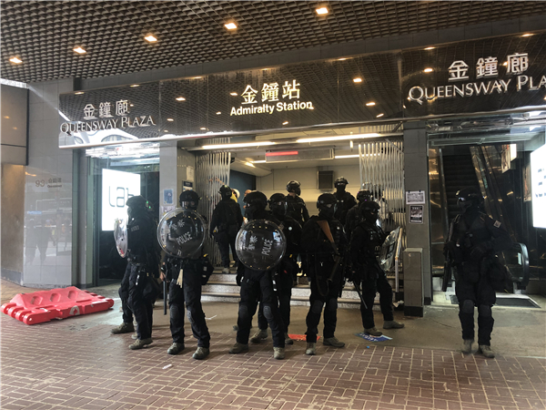 警方表示,下午4時半開始,激進示威者於中環及金鐘多處縱火,有激進示威者破壞並堵塞金鐘站的出入口,夏慤道近政府總部的來回行車線亦被堵塞。警方將會在短時間內驅散示威者。