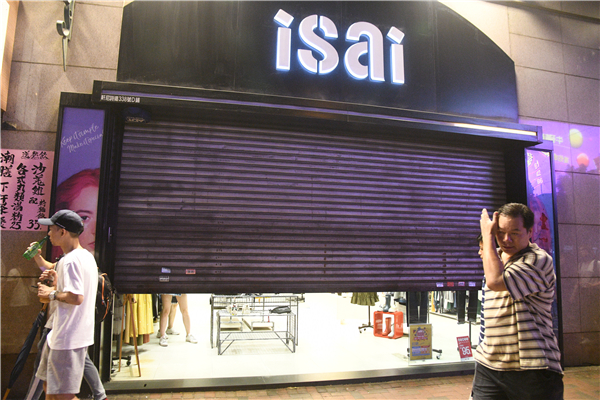 【14:55】黑衣示威者走上街頭。有店鋪暫停營業。(記者林駿強)