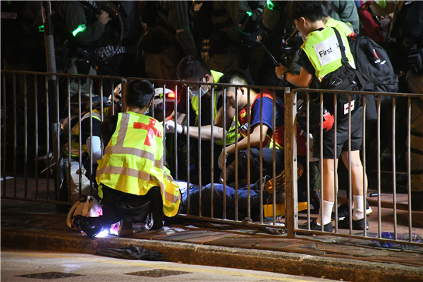 【21:46】有街坊被示威者打傷。(记者冯瀚文)