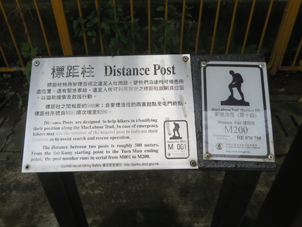 麥徑標距柱序號由M001順次增至M200,看到M200就知道是第十段的屯門終點。