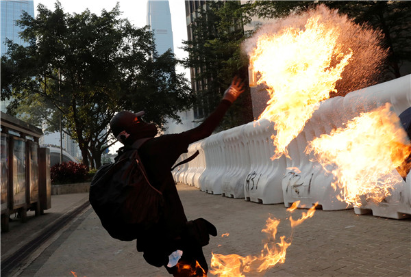 警方指暴徒日前於政總一帶投擲逾80枚汽油彈施襲。路透社