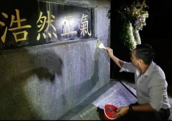 市民钟华新一行5人大约在晚上10点左右率先抵达乌蛟腾抗日烈士纪念园,他告诉记者,自己白天看到英雄墓碑上被喷上了「返送中」的字眼非常愤怒,因为这是侮辱中华民族烈士的行为,「已经不是内部政见矛盾的事情了,而是敌我分明的战争。」他表示,明天‘九一八’事变纪念日,「所以(清洁)这个事情不可能等到明天,不可能让我们的烈士在『九一八』这天被人侮辱。我一分钟也等不了。」