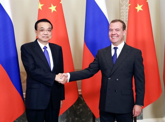當地時間9月17日下午,國務院總理李克強在聖彼得堡同俄羅斯總理梅德韋傑夫共同主持中俄總理第二十四次定期會晤。(新華社記者丁林攝)