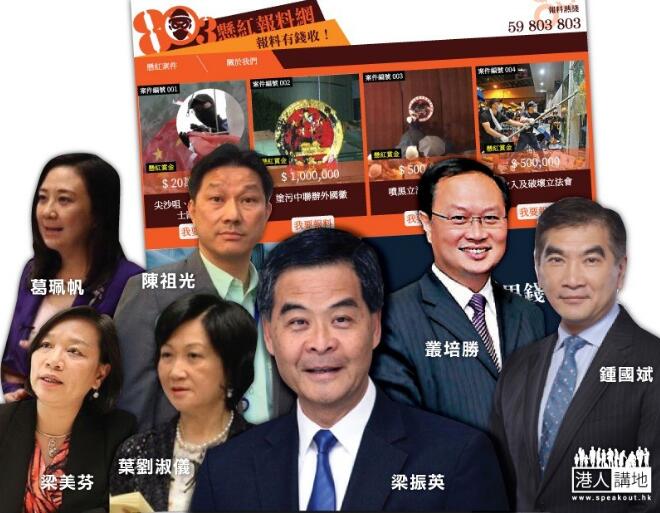 根據「803懸紅報料網」顯示,懸紅最高的是「涂污中联办外国徽」,高达100万港币;