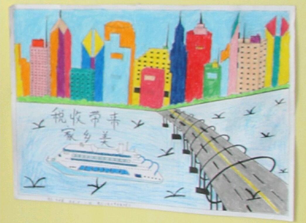 【香港商报网讯】记者李芳 盛芳龄 通讯员岳瑞轩报道 2019年是橫琴新區10周歲,這幅《稅收帶來家鄉美》是一名小學生2012年的繪畫作品,那時的橫琴,更多的是工地和泥濘,當時橫琴中小學位於三塘村,進去只有一條蜿蜒的窄水泥道,但卻絲毫沒有阻止孩子們對橫琴未來的暢想。十年「稅」月,畫中現代化的城市、碧波飛鳥、通途大橋已經一一變成現實……