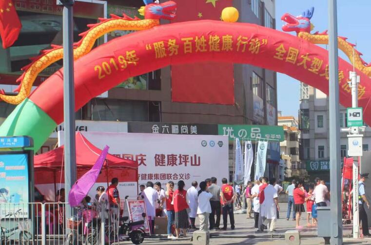 【香港商報訊】記者焦家志報道: 9月21日上午,值新中國成立70周年之際,新成立的坪山區醫療健康集團積極響應國家衛健委、國家中醫藥局和中央軍委後勤保障部聯合發起的《關於開展2019年「服務百姓健康行動」全國大型義診活動周活動的通知》,組織所屬坪山區人民醫院、坪山區婦幼保健院、坪山區疾病預防控制中心三家醫療衛生單位在坪山區坑梓街道大潤家百貨廣場舉行了首場「喜迎國慶、健康坪山」為主題的大型戶外聯合義診活動。