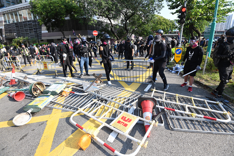 昨日屯門遊行再度演變成暴力衝突,有激進示威者破壞輕鐵站及縱火、打砸、投擲汽油彈。 記者 崔俊良攝