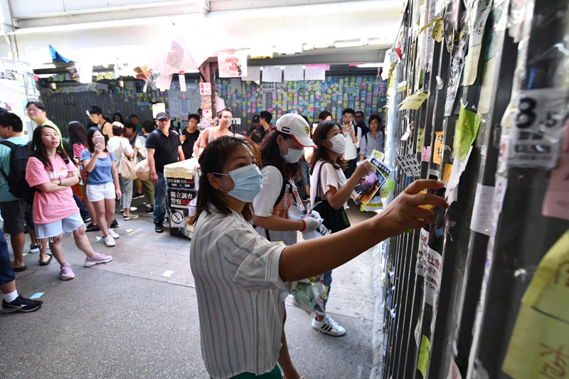 在深水埗,則有約30位義工於港鐵站A出口對出街道掃地,行動結束收集到4袋垃圾;旺角新世紀廣場對開的行人天橋亦曾有7名義工清潔「連儂牆」。
