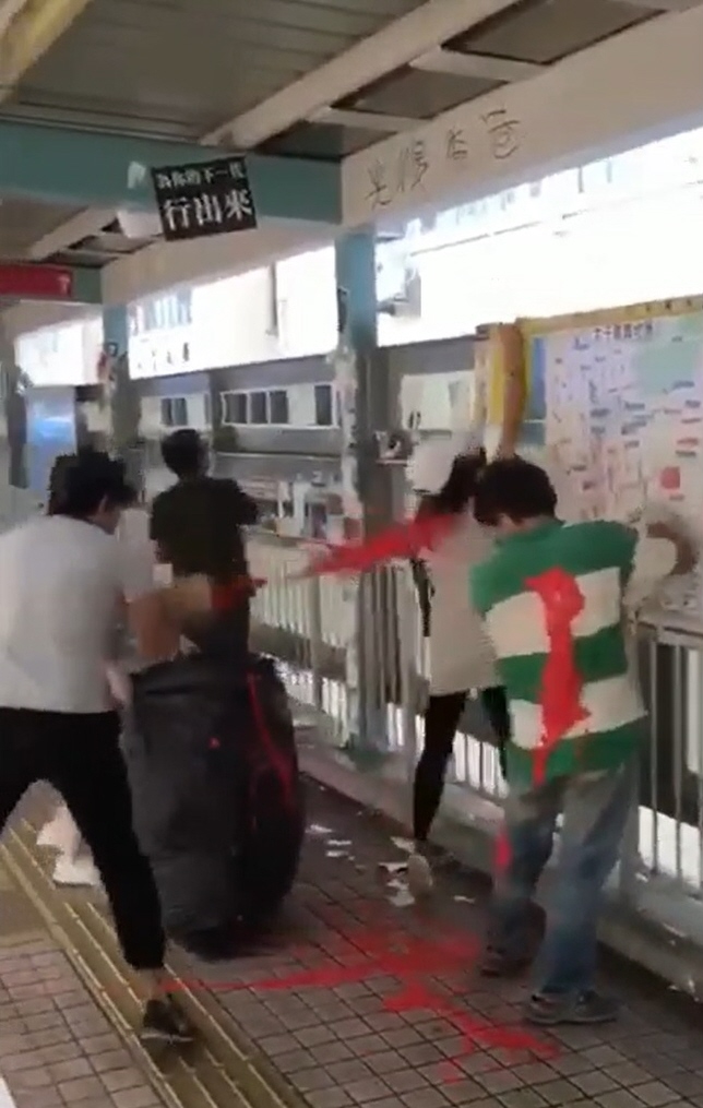 另外,在馬鞍山新港城,一對夫婦昨早在「清牆」時,丈夫疑遭人用不明液體淋潑,女事主報稱遭人搶走手機,警方接報到場調查,夫婦送院治理,正追緝在逃人歸案。