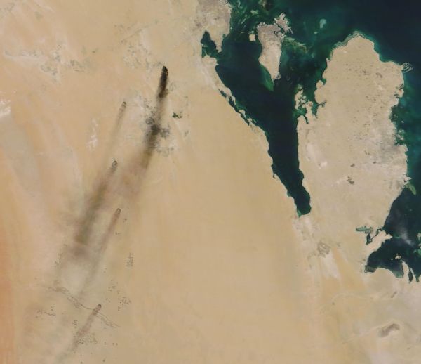 9月14日的衛星照片顯示,位於沙特境內的石油設施起火後冒出濃煙。 新華社