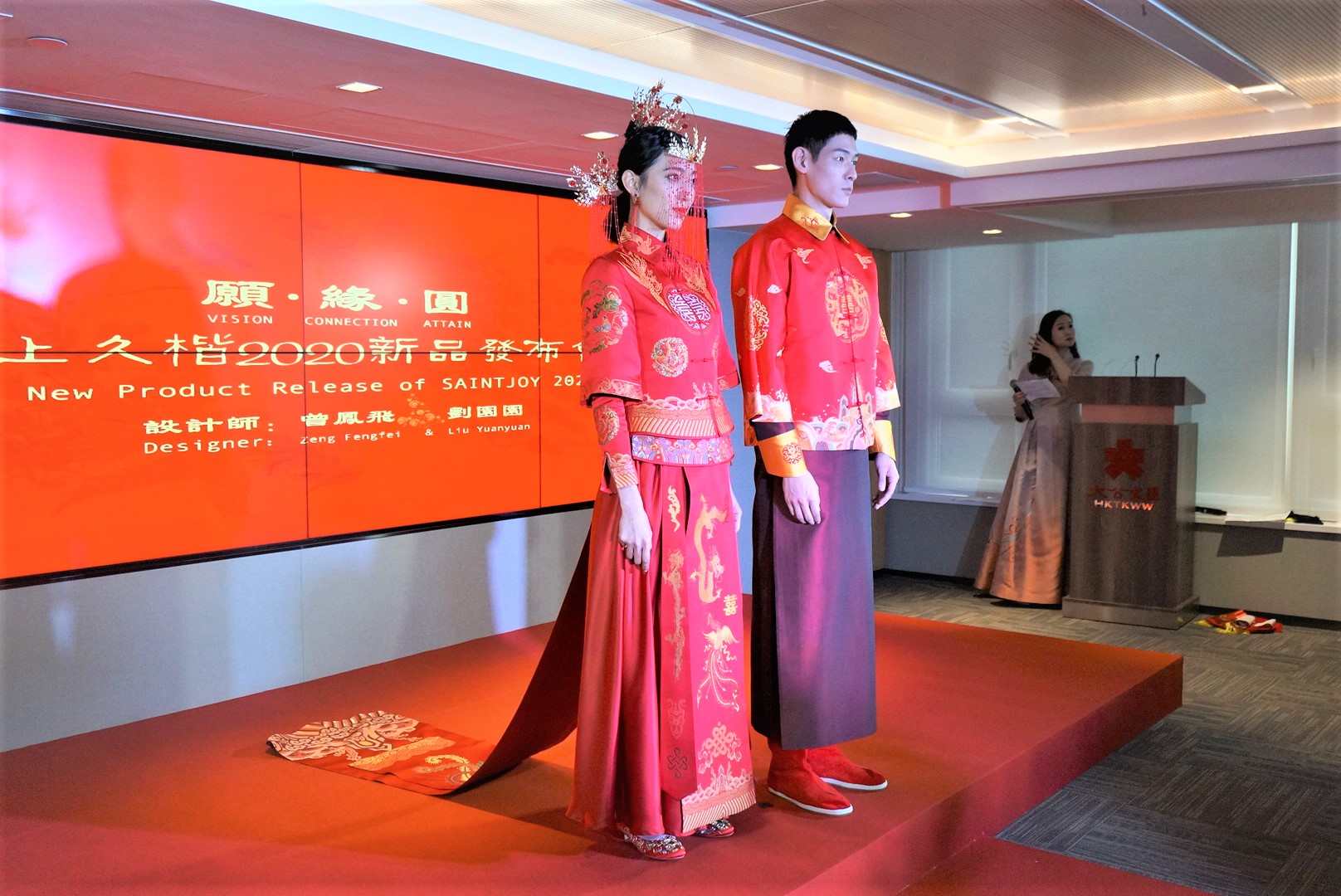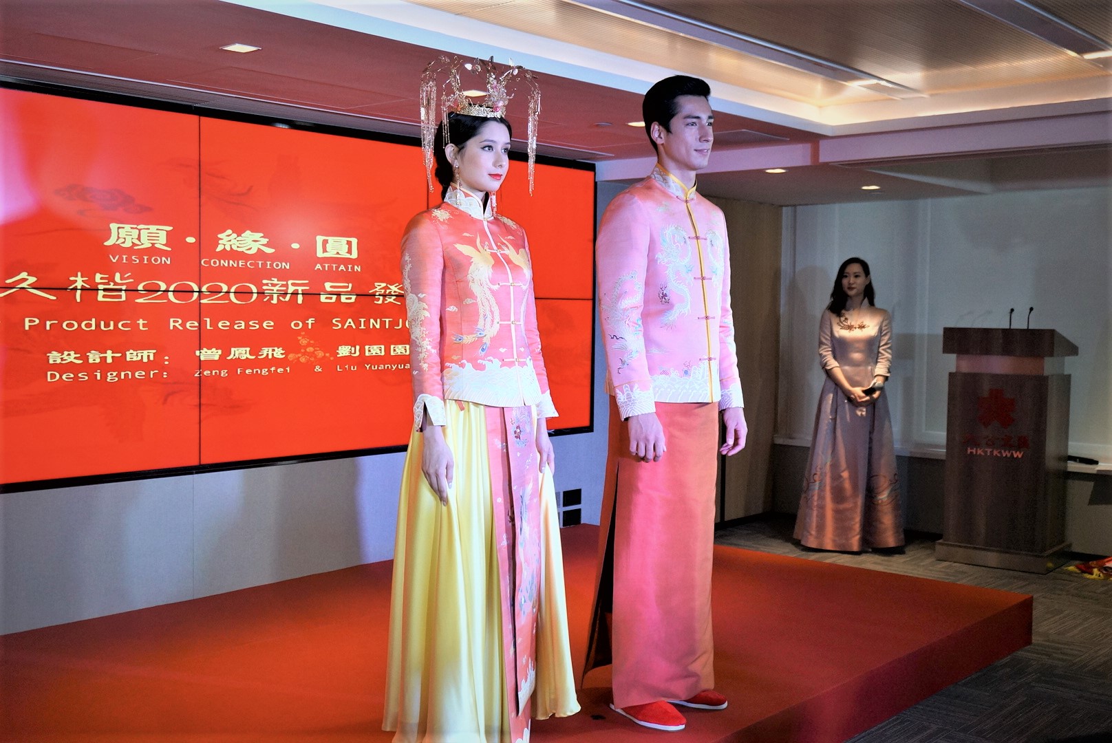 宋錦主題服裝秀展出多套傳統紅色婚嫁服裝,繡有精美圖案。(洪嘉禧攝)