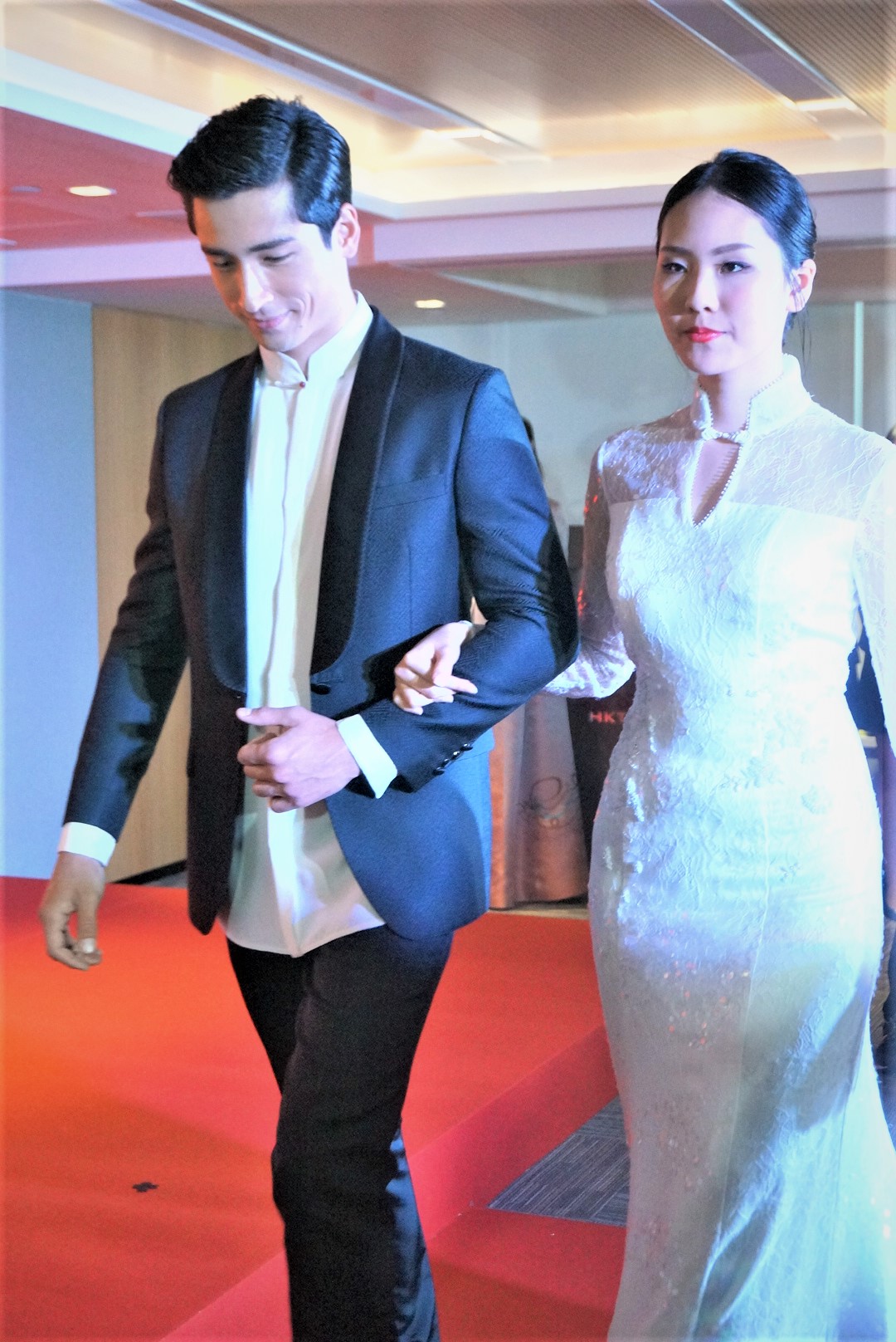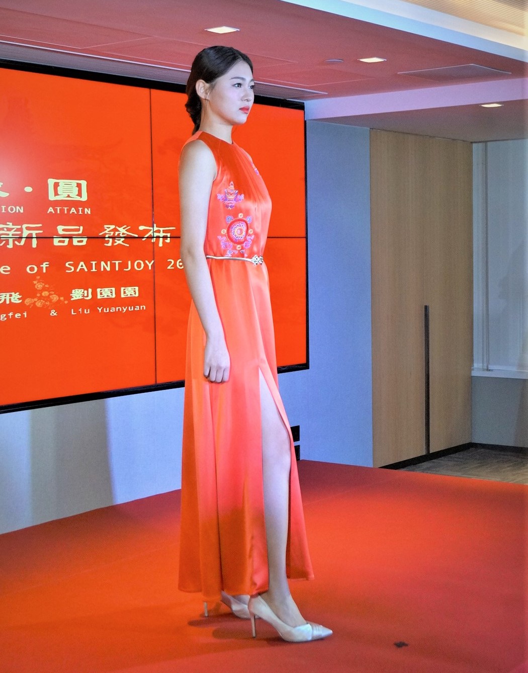 女士晚禮服,以喜慶紅色為主,設計大方得體。(洪嘉禧攝)