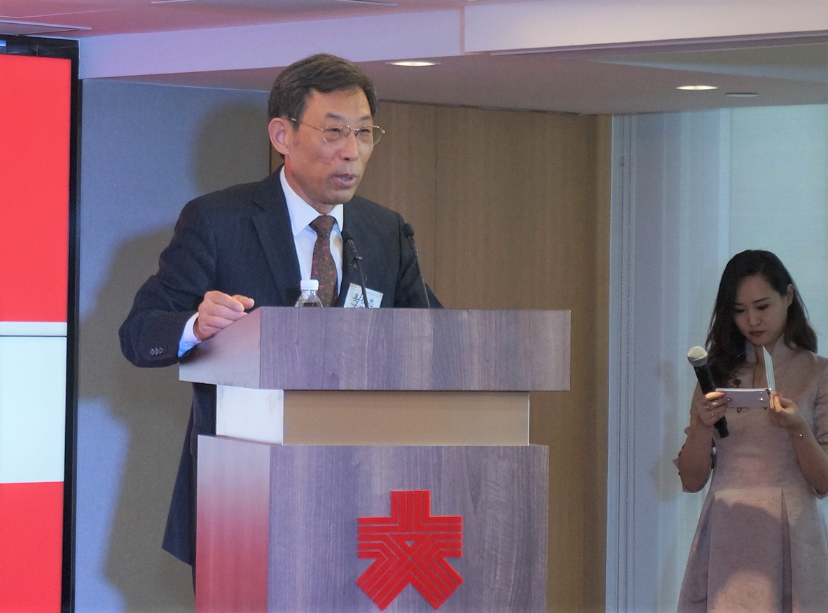 姜在忠致辭時表示,是次展覽呈現了宋錦之美。(洪嘉禧攝)