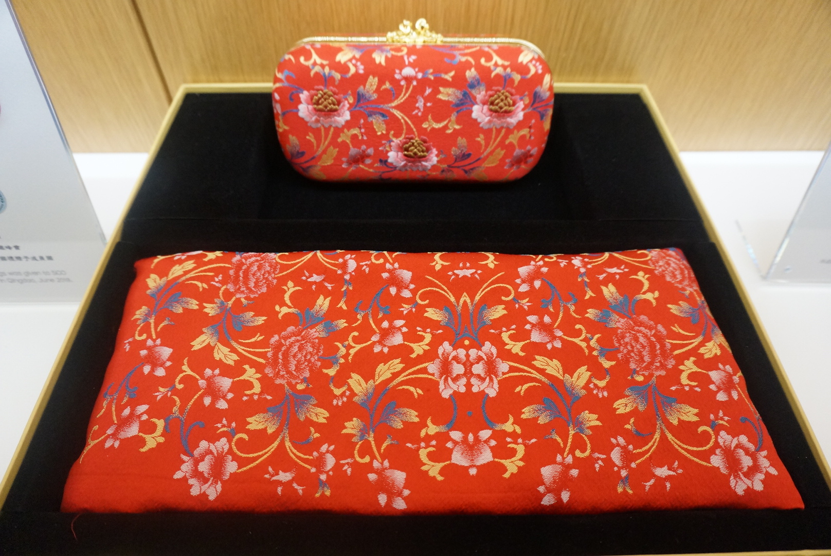 展品之一,2018年6月青島上合組織峰會,作為國禮贈予成員國的上久楷晚宴包。(洪嘉禧攝)