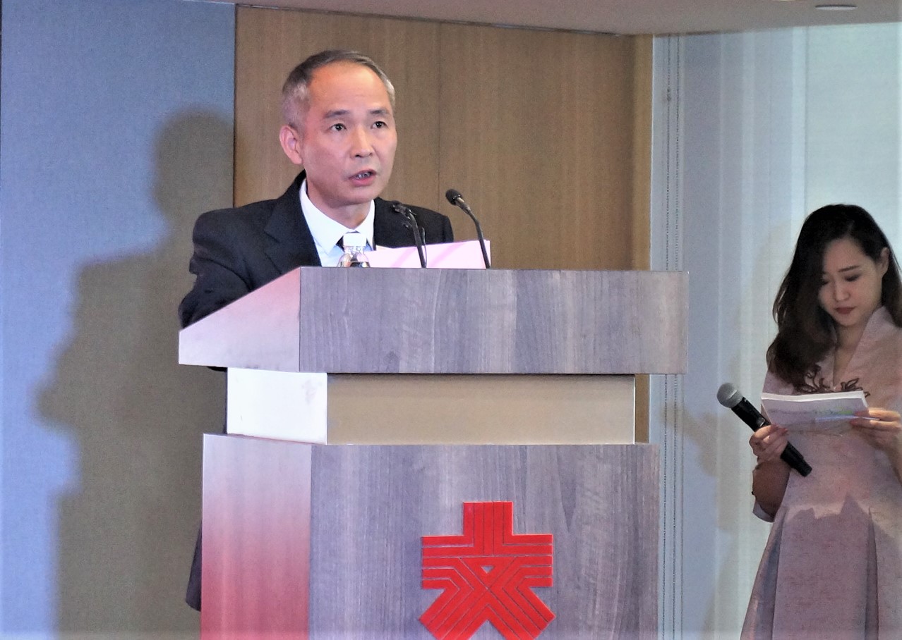 吳建華致辭時表示,服裝秀的展品,融入了豐富的中華傳統文化。(洪嘉禧攝)