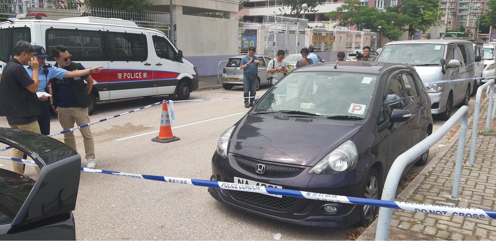 警方封鎖現場調查,並在鄺俊宇的私家車上套取指模。