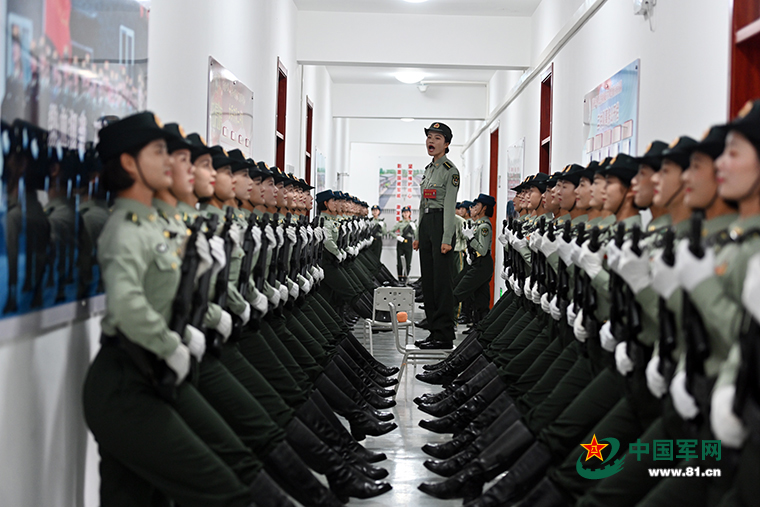 下午訓練正式開始,各排面對照鏡子檢查不足。為了達成整齊的隊列,女兵們付出常人難以想象的努力。