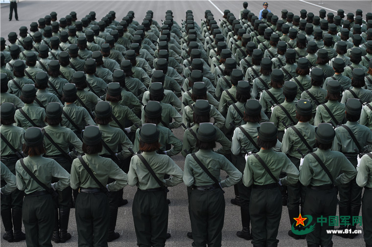 女兵隊員進行方隊合成訓練。她們雙目炯炯,眉宇間透著的那股英氣,神情中散發的那種自豪,讓人記憶深刻。