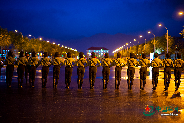 夜訓結束,女兵隊員依次帶回洗漱休息。睡前,一名女兵在閱兵日記中寫道:“展現中國女兵的颯爽英姿和榮譽功勳,我與隊友們已經做好准備,勇往直前!”