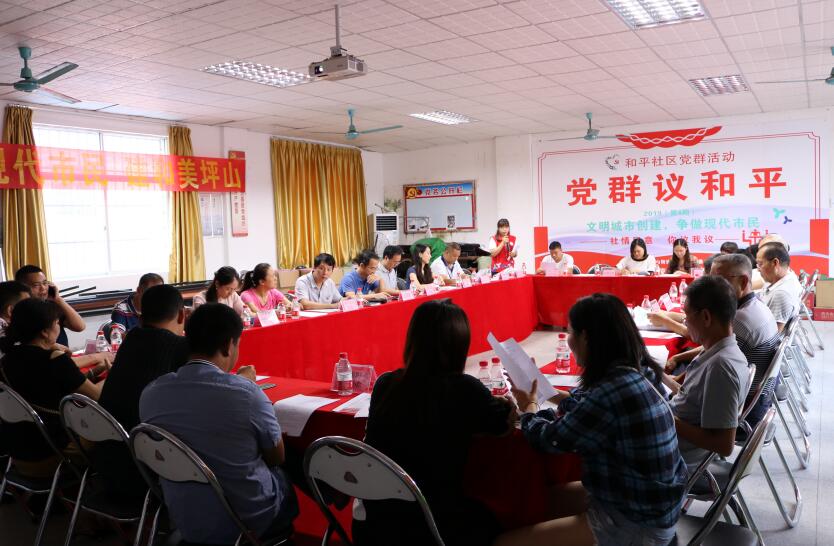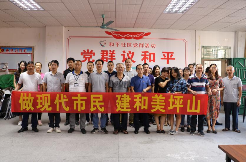 【香港商報訊】記者焦家志 通訊員王安榮、陳雪娜報道: 9月25日下午,深圳市坪山區坪山街道和平社區黨委開展2019年第4期「黨群議和平」議事活動。街道、社區各相關職能部門、各居民小組居民代表、黨員代表齊聚一堂,圍繞「創建文明城市·爭做現代市民」主題展開熱烈討論。