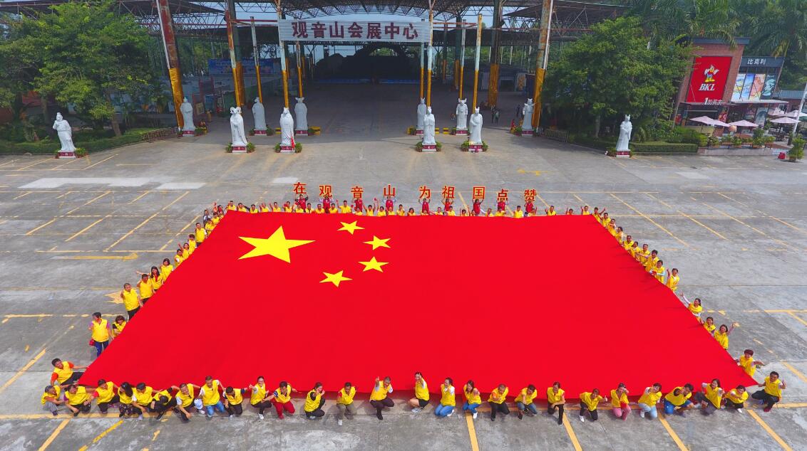 【香港商報網訊】近日,在東莞一面18米大國旗在綠水青山間隨風飄揚,引起廣泛關注。據了解,這是東莞樟木頭觀音山景區舉行的迎國慶主題快閃活動,吸引了眾多游客圍觀和參與。本次快閃活動以“我在觀音山為祖國點贊”為口號,伴隨著一首《我和我的祖國》,18米超震撼的國旗在眾人的注目中飛揚,用這種特別的方式向新中國成立70周年獻禮,點燃現場所有游客的熱情。