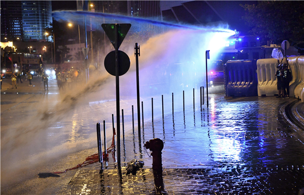 大批示威者昨晚集結於政總一帶,有激進示威者投擲磚塊及燃燒瓶,警方出動水炮車驅散。