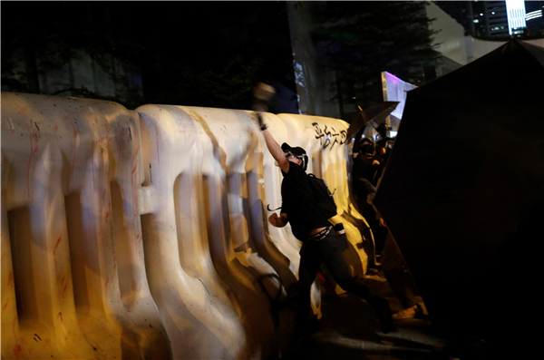 有激進示威者起初仍然不願散去,繼續向政總位置掟磚,打爛多塊玻璃,甚至有一群人在路中心焚燒中國共產黨黨旗,並沿金鐘道向灣仔方向撤退。