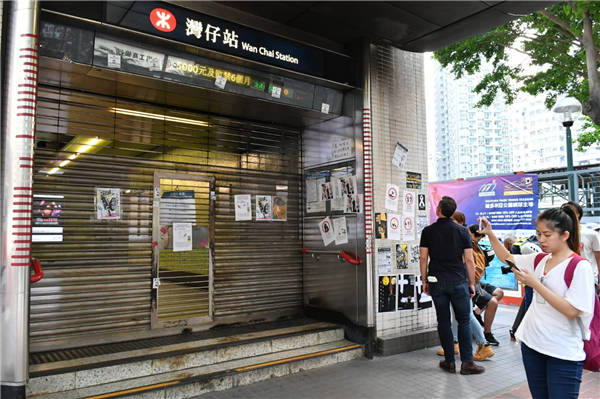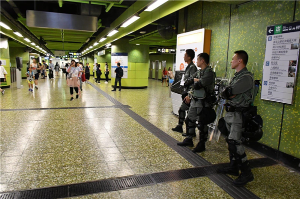 警方昨日下午在灣仔站布防。記者馮瀚文攝