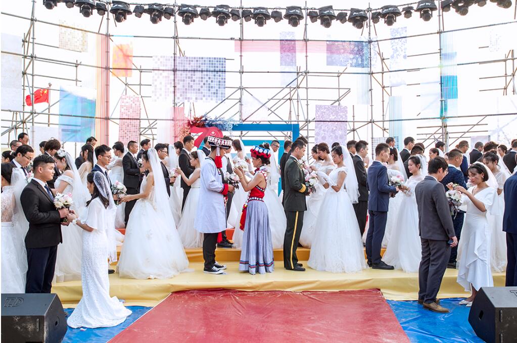 70對新人手捧鮮花為祖國祝福。