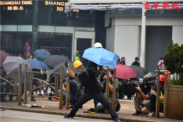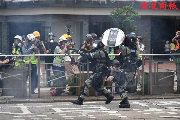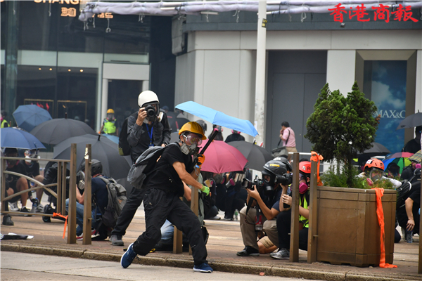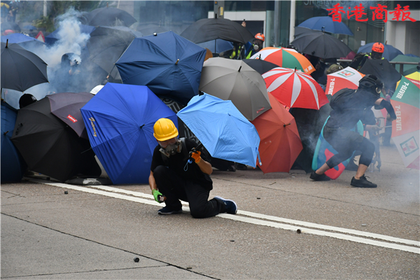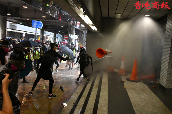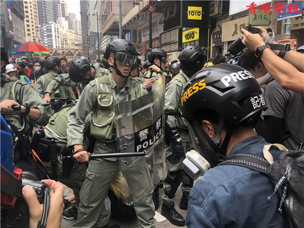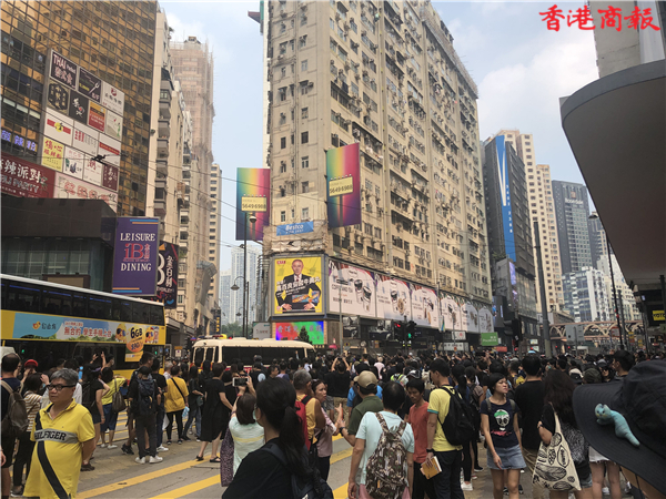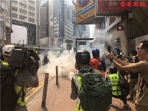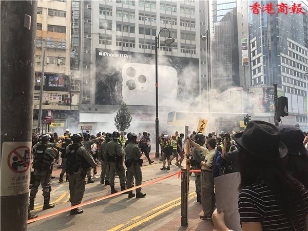 【香港商报网讯】记者冯炜强报道:有反修例示威者於銅鑼灣崇光百貨外發起大遊行,但未獲警方發出不反對通知書。下午2時許,示威者試圖佔據銅鑼灣崇光百貨外,軒尼詩道,警察開始驅趕,其後在軒尼詩道及東角道發放近十枚催淚彈驅散示威者。