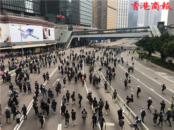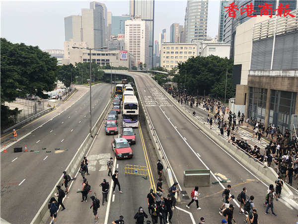 示威者佔據夏愨道,阻礙行車。记者冯炜强摄