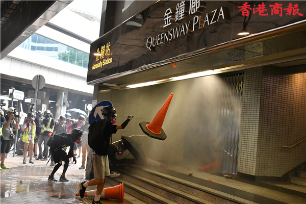 金钟一個地铁出口消防喉被破壞。記者馮瀚文攝