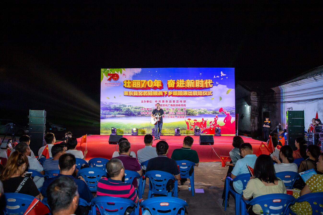 【香港商报网讯】记者卢伟、通讯员黄少卿、叶衍达报道:近日,平山街道碧山村热闹非凡,原来,“壮丽70年•奋进新时代”——惠东县文艺轻骑兵下乡巡回演出活动在这里正式启动,舞蹈、独唱、乐器演奏、歌伴舞等群众喜闻乐见、精彩纷呈的文艺节目轮番上演,为当地约400名群众送上了一场丰富的文化艺术盛宴。