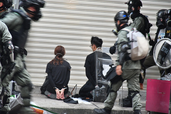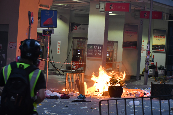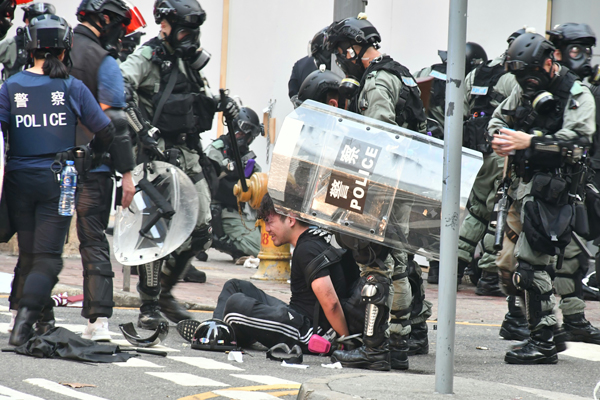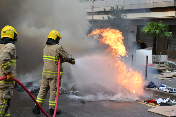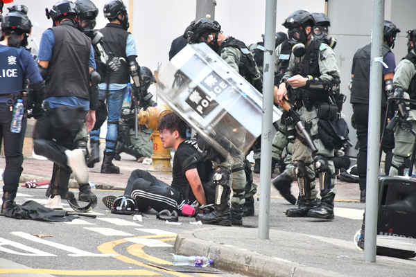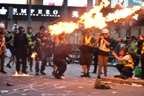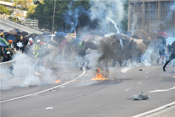 示威者持續向防暴警察投擲汽油彈,馬路上火勢猛烈,並搬來障礙物推進。防暴警察下午4時向示威者快速推進,多人被制服。