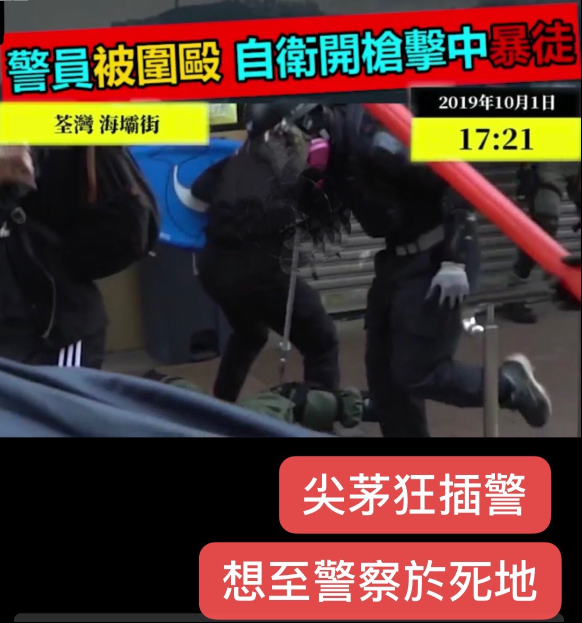 【香港商報網訊】在荃灣大河道,多名暴徒持械襲擊一名落單警員,致其倒地並持續圍毆,該警員生命安全遭到嚴重威脅。另一名警員在解救過程中拔槍戒備並警告,同樣遭到暴徒持鐵棍攻擊,警員被迫開槍,將最前面實施襲擊的暴徒擊傷。在生命遭到威脅的情況下,警員開槍合法合理。