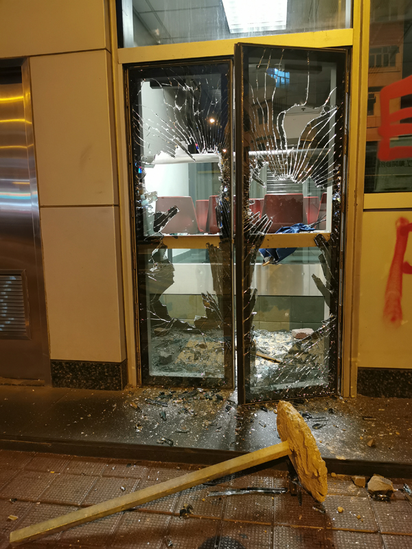 示威者大肆破壞長沙灣政府合署。記者 木子攝