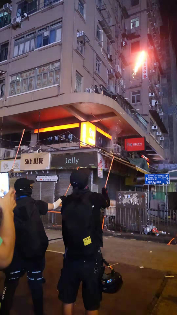 最後示威者在現場燃放煙花, 不斷射到兩旁的民居,十分危險。 大概晚上9點半, 現場示威者逐漸散去。