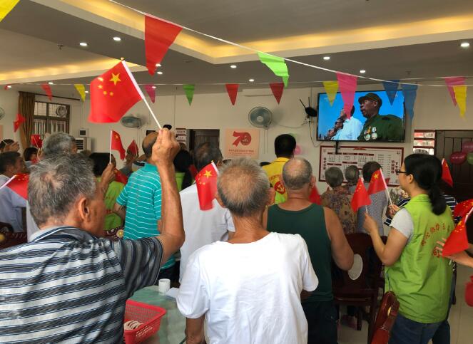 「這次我們組織了40多位老人來到前進村委會,一起觀看閱兵儀式,感受國慶的氣氛,感受國家的繁榮富強。這裡的老人家都是70歲以上的,我們考慮到老人家如果自己在家裡看,氣氛會沒有大家一起看那麼好,所以組織大家一起。」同善社工中心負責人許少芬說。