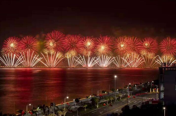 【香港商報網訊】記者陸紹龍報道:築夢灣區映初心,花開珠澳頌中國。10月1日晚,珠海市慶祝中華人民共和國成立70 周年焰火晚會在拱北灣海域舉行。火樹銀花、流光溢彩,16萬發禮花編織最美夜空,輝映珠澳兩地,深情表達對新中國70周年華誕的美好祝願。