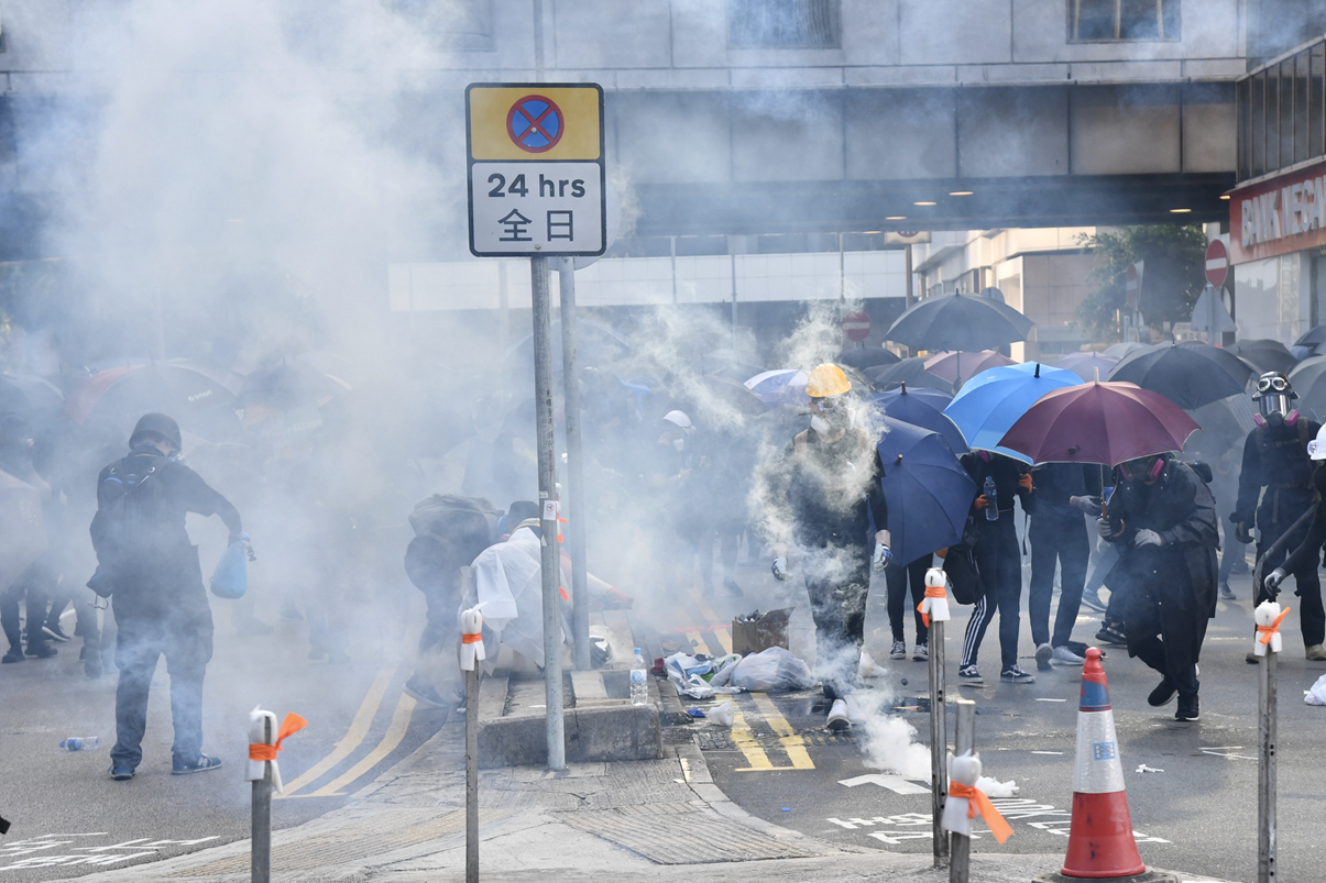 暴徒在商業中心金鐘破壞及縱火。