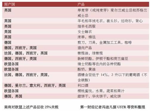 美对欧关税打击,选的全是代表性产品