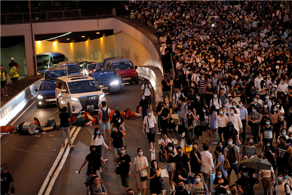 在夏慤道聚集的部分黑衣人,於晚上近8時起步沿告士打道往灣仔方向前行,沿途以膠馬、垃圾桶等雜物堵塞告士打道,部分行經的車輛需要繞道,其間經過灣仔警察總部時以雷射筆及電筒照向在警察總部內戒備的防暴警員;亦有黑衣眾在銅鑼灣崇光百貨外聚集,堵塞怡和街及紅隧港島入口馬路,又放火焚燒已落閘暫時封閉的銅鑼灣港鐵站多個出入口;防暴警員晚上10時到場發射催淚彈驅散。
